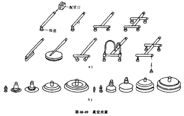 (3)真空夾緊,對(duì)零件施加負(fù)壓,使零件貼進(jìn)在夾爪上。常用形式為用按一定方式排列的一組吸向零件提供真空。
