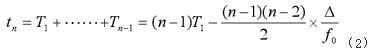 上式分別顯示了脈沖數(shù)n與脈沖頻率fn和時(shí)間tn的關(guān)系。令△/f0=δ,即加速階段相鄰兩脈沖周期的減量,則上述公式簡(jiǎn)化為: