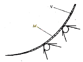 誤差分析在數(shù)控車床使用過(guò)程中,為了降低被加工工件表面的粗糙度,減緩刀具磨損,提高刀具壽命,通常將車刀刀尖刃磨成圓弧,圓弧半徑一般在0.4~1.6mm之間。如圖1所示,采用試切法對(duì)刀時(shí)由A、B兩點(diǎn)分別確定刀架中心的X、Z位置。這樣,加工程序所描述的刀位點(diǎn)是P點(diǎn),數(shù)控系統(tǒng)將控制P點(diǎn)的運(yùn)動(dòng)軌跡,而在切削時(shí)實(shí)際起作用的切削刃則是刀尖圓弧上的各切點(diǎn),這勢(shì)必會(huì)產(chǎn)生加工表面的形狀誤差。在車削外圓、內(nèi)孔及端面時(shí),這個(gè)誤差為零。而在加工弧面和錐面時(shí),這個(gè)誤差就很明顯。圖1零件SR10-0.04球面加工的誤差分析見(jiàn)圖2。圖中M線為加工程序所描述的P 的軌跡,即工件的理想尺寸,而實(shí)際加工后的輪廓是N線,陰影就是少切削部分,即加工誤差。假設(shè)刀尖圓弧半徑為r=0.4mm,理論分析表明,N線是半徑為R-r=9.6的圓弧,M、N兩圓弧圓心X、Z向均相距r=0.4mm,最大誤差約為0.17mm,不滿足精度要求。