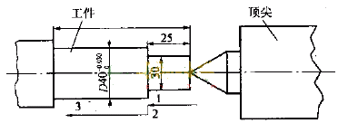 中拖板絲杠副間隙是必然存在的,對(duì)普通車床來(lái)說(shuō),間隙較大;對(duì)數(shù)控車床而言,由于采用的是滾珠絲杠副,并且都進(jìn)行了預(yù)緊,從理論上講,是達(dá)到了零間隙,無(wú)反向空程。實(shí)際上,對(duì)于有相對(duì)運(yùn)動(dòng)的傳動(dòng)部件,間隙是不可避免的。對(duì)高精度的滾珠絲杠副而言,只是間隙非常微;如果真正達(dá)到零間隙,運(yùn)行的阻力就會(huì)增大。因而,在絲杠反向運(yùn)動(dòng)時(shí),還是存在微小的空程,這個(gè)空程就足夠影響加工精度。在加工軸類零件時(shí),一般的加工路線如圖3所示,通常是通過(guò)下面一段程序來(lái)進(jìn)行的: