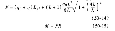 鏈條式傳誦機(jī)的驅(qū)動(dòng)力F和驅(qū)動(dòng)力距M,可參照鏈條運(yùn)輸機(jī)的受力分析方法計(jì)算,見圖50-58。