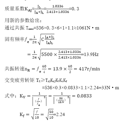 在工作頻率以內(nèi),該交變轉(zhuǎn)矩必須與聯(lián)軸器的交變疲勞轉(zhuǎn)矩TK相比較。