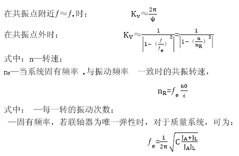 當(dāng)需要減振、緩沖、改善傳動(dòng)系統(tǒng)對(duì)中性能時(shí),應(yīng)選用撓性或彈性聯(lián)軸器,且機(jī)組系統(tǒng)中聯(lián)國器為唯一彈性部件,主、從動(dòng)機(jī)可簡化為兩個(gè)質(zhì)量系統(tǒng),此時(shí)可采用以下計(jì)算,其他情況則需引入振動(dòng)計(jì)算。