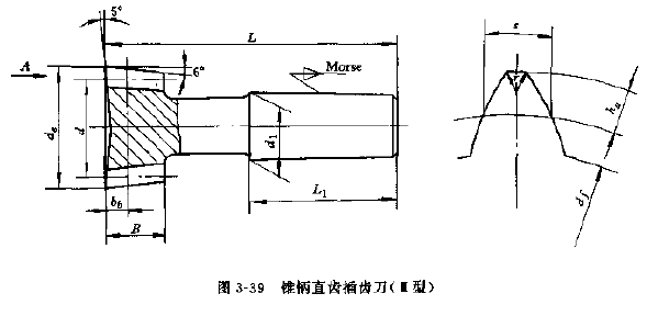錐柄直齒插齒刀主要用于加工內(nèi)齒輪,其標(biāo)稱分度圓直徑為25.38mm兩種,精度等級(jí)分為A、B兩種。