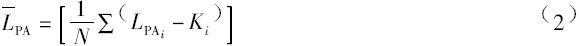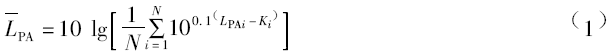 當(dāng)各測點(diǎn)的A計(jì)權(quán)聲壓級(jí)之差不超過5dB時(shí),可由式2計(jì)算LPA: