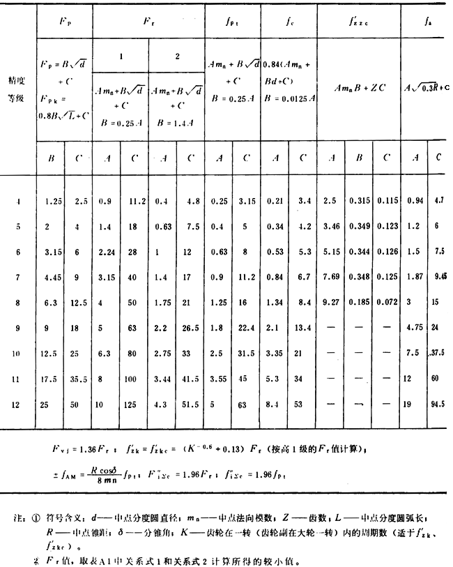A3極限偏差及公差與齒輪幾何參數(shù)的關(guān)系式(見表A1)。