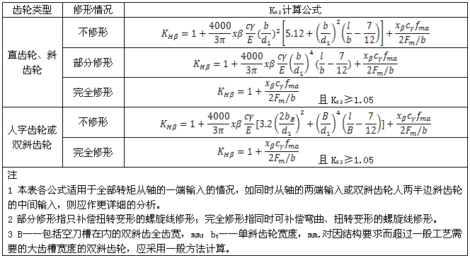 在無法按上述方法確定KHβ時(shí),可按本標(biāo)準(zhǔn)提供的下述兩種方法——一般方法或簡化方法近似計(jì)算齒向載荷分布系數(shù)。