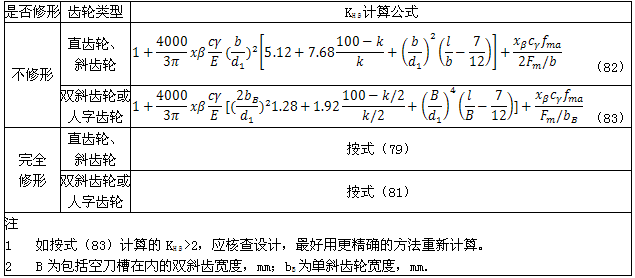 式中:KHβ——接觸強(qiáng)度計(jì)算的齒向載荷分布系數(shù),見6.3.2或6.3.3;