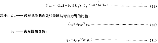 本標(biāo)準(zhǔn)以載荷作用側(cè)齒廓根部危險(xiǎn)截面上的最大彎曲應(yīng)力作為名義彎曲應(yīng)力,并經(jīng)相應(yīng)的系數(shù)修正后作為計(jì)算齒根應(yīng)力。