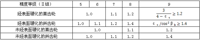 表5齒間載荷分配系數(shù)KHα
