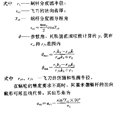 當(dāng)阿基米德蝸桿的導(dǎo)程角yz1=≤5°時(shí),則飛刀的前刃面可安裝在刀桿的軸向截面內(nèi),其飛刀的齒形為直線,齒形角等于蝸桿的軸向齒形角。如果蝸桿的導(dǎo)程角較大,為了改善飛刀兩側(cè)切削刃的工作條件,可采用阿基米德法向飛刀,其齒形應(yīng)是阿基米德蝸桿的法向截形相同的曲線。