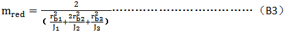 此時,假定內(nèi)齒圈的質(zhì)量為無窮大,因此,誘導(dǎo)質(zhì)量等于行星齒傳輸線的當量質(zhì)量,mred由式(B2)確定: