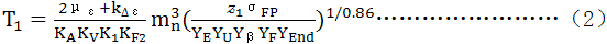 式(B2)與正文的公式(8)等效,其符號意義及取值同公式(8)。σHP及YF分別按大、小齒輪確定,σHP1/YF1和σHP2/YF2值,取其中的小值代入式(B2)。對于人字齒輪,(2με+k△ε)按單側(cè)齒寬計,算得的T1值為單側(cè)齒寬的名義轉(zhuǎn)矩。