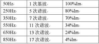 根據(jù)諧波分析,在變頻器電路中不含3次及3的整數(shù)倍諧波分量。在三相對(duì)稱系統(tǒng)中,3的整數(shù)倍諧波可自行消除,可以不考慮,亦無(wú)偶次諧波。其各次諧波峰值可達(dá)到的百分比如下表所示: