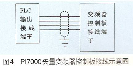 (2)元器件的選擇。根據(jù)三相異步電動(dòng)機(jī)的功率為90kW,額定電流為340A,額定電壓為220V,額定頻率為37.5Hz,最高頻率140Hz,固選逆變器件IGBT為1200A/600V,儲(chǔ)能電解電容為6個(gè)4700μF/450V,并聯(lián)在高壓直流母線兩端,保險(xiǎn)為600A;每個(gè)IGBT的PN端并聯(lián)兩個(gè)3μF/600A的吸收電容。 4.3 PI7000矢量變頻器控制板接線示意圖及其說(shuō)明 控制過(guò)程說(shuō)明:司機(jī)腳踩油門(mén)、換檔、腳剎、倒車(chē)等的操作的狀態(tài),其所對(duì)應(yīng)的數(shù)字或模擬信號(hào)傳送到PLC中,PLC通過(guò)程序處理,再將所需信號(hào)傳送到變頻器的控制板的接線端子,對(duì)變頻器進(jìn)行自動(dòng)控制,變頻器按照所設(shè)定的功能參數(shù)實(shí)現(xiàn)相應(yīng)的功能。變頻器采用矢量轉(zhuǎn)矩控制,滿足汽車(chē)系統(tǒng)的低頻大轉(zhuǎn)矩輸出、高速動(dòng)態(tài)特性,使三相異步電動(dòng)機(jī)帶動(dòng)輪軸快速、平滑的起動(dòng)、運(yùn)行、停止(沒(méi)有沖擊力),半坡起動(dòng)力矩可以達(dá)到200%,達(dá)到混合動(dòng)力電動(dòng)汽車(chē)的設(shè)計(jì)要求,如圖4所示。