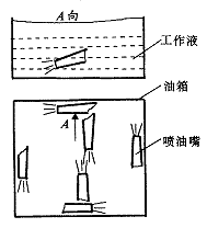 油箱攪拌器和工作液槽攪拌器是本工作液循環(huán)系統(tǒng)的關(guān)鍵,也是本實(shí)驗(yàn)裝置與普通電火花機(jī)床的顯著區(qū)別之處。油箱攪拌器在工作原理和結(jié)構(gòu)上可以有三種方式,如圖3、圖4、和圖5所示。圖3的結(jié)構(gòu)是利用電動(dòng)機(jī)帶動(dòng)葉片做旋轉(zhuǎn)運(yùn)動(dòng),來(lái)攪動(dòng)工作液。其優(yōu)點(diǎn)是結(jié)構(gòu)簡(jiǎn)單:缺點(diǎn)是由于離心力的作用,油箱中遠(yuǎn)離葉片中心處的微粉濃度要比靠近葉片中心處的高,造成微粉分布不均勻,另外,這種結(jié)構(gòu)一經(jīng)確定,不易調(diào)整攪拌器在油箱中的位置。圖4利用油泵將工作液從油箱A向A中抽出,通過(guò)安裝在油箱四周的噴油嘴注射回油箱中,形成湍流來(lái)達(dá)到攪拌工作液的目的。特點(diǎn)是微粉在工作液中分布比較均勻,而且結(jié)構(gòu)簡(jiǎn)單,噴油嘴位置調(diào)整方便:缺點(diǎn)是由于增加了油泵,比前者成本高。圖5綜合了前兩種攪拌方式,用電動(dòng)機(jī)帶動(dòng)彎管旋轉(zhuǎn),再將工作液從彎管臂中噴出,因此攪拌后,工作液中微粉的分布要比前兩者均勻;但結(jié)構(gòu)復(fù)雜,成本也高得多。作者在本裝置的設(shè)計(jì)中采用圖4的結(jié)構(gòu),實(shí)踐證明攪拌效果達(dá)到預(yù)期目標(biāo)。工作液槽攪拌器的工作原理與油箱攪拌器大致相同,不再贅述。
