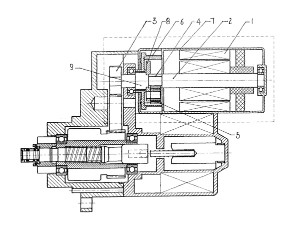 一種電機減速機,主要解決電機主軸傳遞到起動機的扭矩的問題,包括與起動電機、減速機構及單向器,起動電機的輸出齒輪通過減速機構與單向器的輸入齒輪聯接,其特征在于:所述的起動電機的主軸上設有中心齒輪,該中心齒輪與多個星型齒輪、大齒圈組成行星輪機構,大齒圈與電機殼體固定在一起,星型齒輪支架安裝在傳動軸的一端,該傳動軸的另一端安裝電機輸出齒輪。該種電機減速機使用效果理想,具有減速增扭功能,而且結構簡單,制作容易。