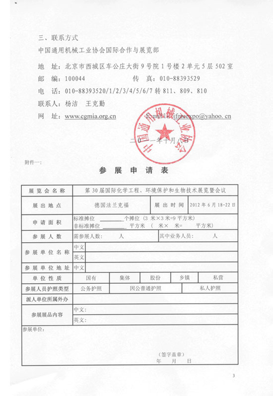 參展方式:預(yù)參展會員企業(yè)于2011年10月31日前向各專業(yè)分會報名并說明參展面積;總會統(tǒng)計參展商人數(shù)及參展面積后,向阿赫瑪展會主辦方申請參展總面積,待主辦方確認(rèn)面積及價格后,向各參展商通報最終展位價格并與之共同協(xié)商展位分布!秴⒄股暾埍怼芬姼郊。