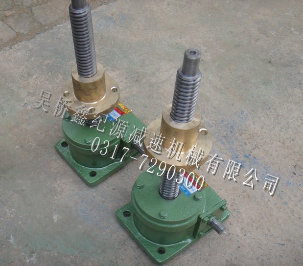 二JWB型蝸輪絲杠升降機(普通滾珠絲桿型) 高速、高頻率 JWB型(普通滾珠絲桿型),適用于高速,高頻率和高性能的裝置中,主要構成部件為精密滾珠絲桿副與高精度蝸輪蝸桿副。
