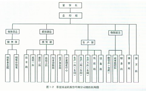Ⅰ豐碩成果 坐落在中國(guó)蘇中平原的泰星減速機(jī)股份有限公司從1984年建廠,經(jīng)過(guò)20多年的拼搏發(fā)展,取得了驕人的業(yè)績(jī),創(chuàng)造了許多令人難以置信的奇跡。 從當(dāng)初無(wú)資金、無(wú)設(shè)備、無(wú)產(chǎn)品、無(wú)市場(chǎng)的一窮二白、資不抵債的作坊式小廠發(fā)展成為現(xiàn)擁有固定資產(chǎn)3.8億元,員工2500多人,其中一程技術(shù)人員586人,占地68萬(wàn)平方米的中國(guó)最大的減速機(jī)制造企業(yè),成為了中國(guó)減速機(jī)的生產(chǎn)基地,泰星減速機(jī)股份有限公司。根據(jù)2003年中國(guó)機(jī)械500強(qiáng)的排序,名列全國(guó)減速機(jī)行業(yè)榜首。 公司生產(chǎn)減速機(jī)不僅產(chǎn)量最高,銷量也最大。2004年,公司的銷售收入為5.5億元,主要產(chǎn)品的市場(chǎng)占有率高達(dá)25%,已經(jīng)連續(xù)11年名列全國(guó)同行首位。 20年前公司為社會(huì)創(chuàng)造了33億4千多萬(wàn)元的財(cái)富,向國(guó)家交納了近4億元的稅金。 公司的產(chǎn)品遍布全國(guó)各地,并已走向德國(guó)、日本、美國(guó)等機(jī)械強(qiáng)國(guó),國(guó)家的重點(diǎn)工程項(xiàng)目,從三峽水利工程,江陰長(zhǎng)江大橋建設(shè)工程,黃河小浪底工程,葛洲壩工程,西氣東輸工程到南水北調(diào)工程等都在使用泰星的產(chǎn)品。 泰星減速機(jī)股份有限公司組織機(jī)構(gòu)圖見(jiàn)圖1-2。在公司目前的2500多名員工中,有50%為當(dāng)?shù)剞r(nóng)民,大專以上學(xué)歷的僅占20%,其余的皆為初、高中以下學(xué)歷,但他們卻生產(chǎn)出了國(guó)內(nèi)領(lǐng)先、國(guó)際一流的產(chǎn)品。 泰星牌減速機(jī)成為中國(guó)減速機(jī)行業(yè)惟一的國(guó)家“121”重點(diǎn)保護(hù)名優(yōu)產(chǎn)品。