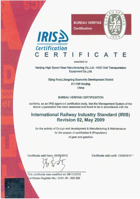 南高齒通過(guò)IRIS(國(guó)際鐵路行業(yè)標(biāo)準(zhǔn))認(rèn)證