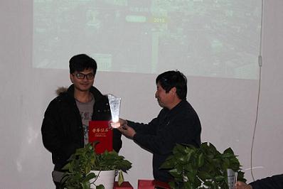 大會(huì)的第三部分——2015年度公司師道獎(jiǎng)以及優(yōu)秀員工獎(jiǎng)的評(píng)選,在全體員工的票選下,生產(chǎn)部經(jīng)理周保坤、工程技術(shù)中心何立東獲得師道獎(jiǎng);生產(chǎn)部的趙水林、韓毛孩獲得優(yōu)秀員工獎(jiǎng)?偨(jīng)理為他們頒發(fā)榮譽(yù)證書和獎(jiǎng)杯。