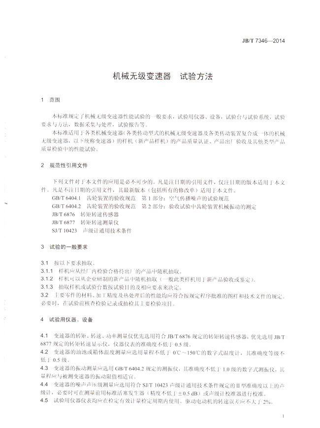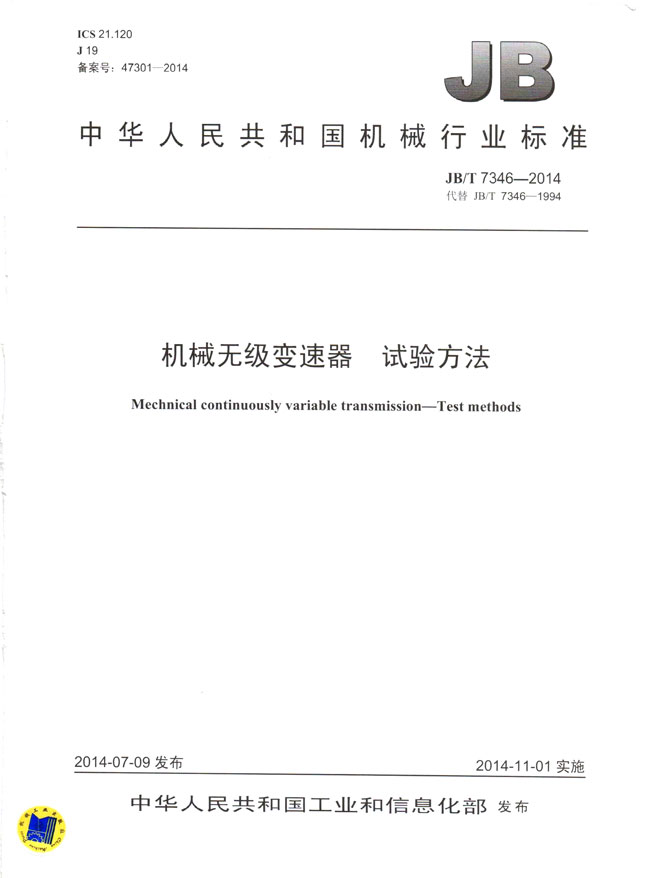 >>機械無級變速器試驗方法(JB/T7346-2014)