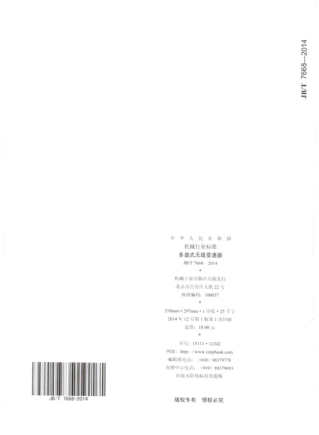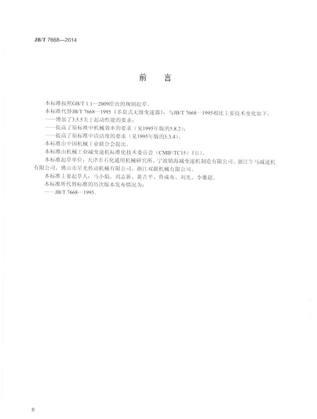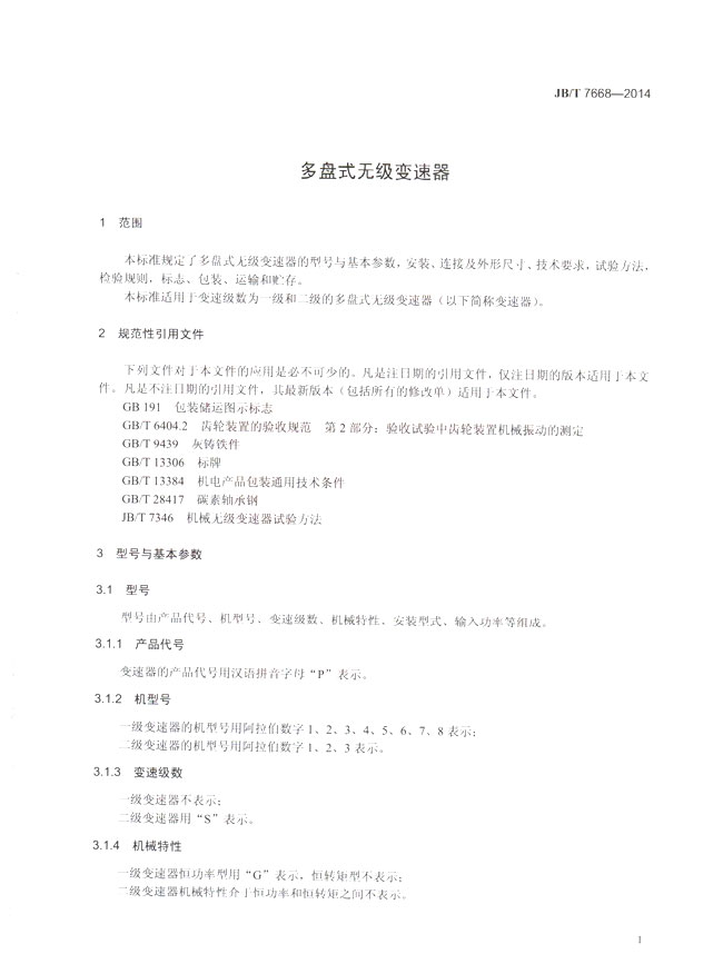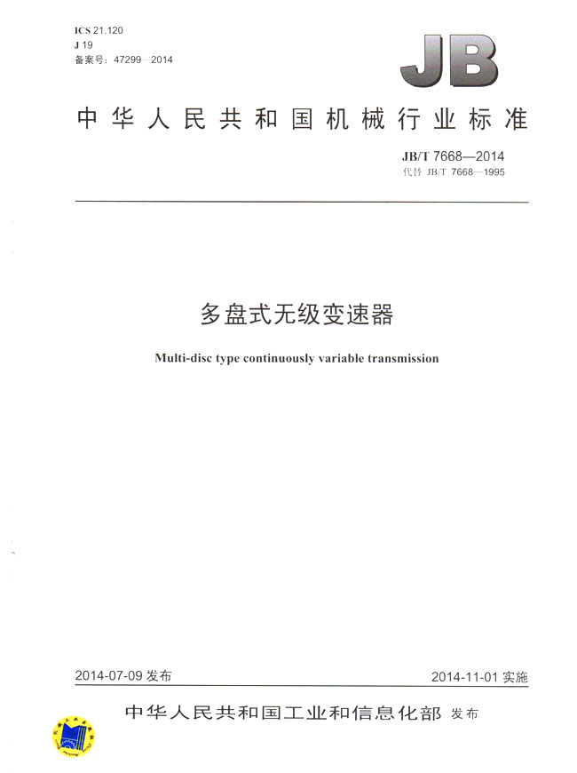 多盤(pán)式無(wú)級(jí)變速器(JB/T7668-2014)