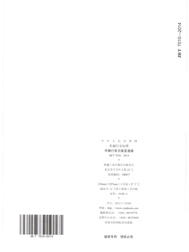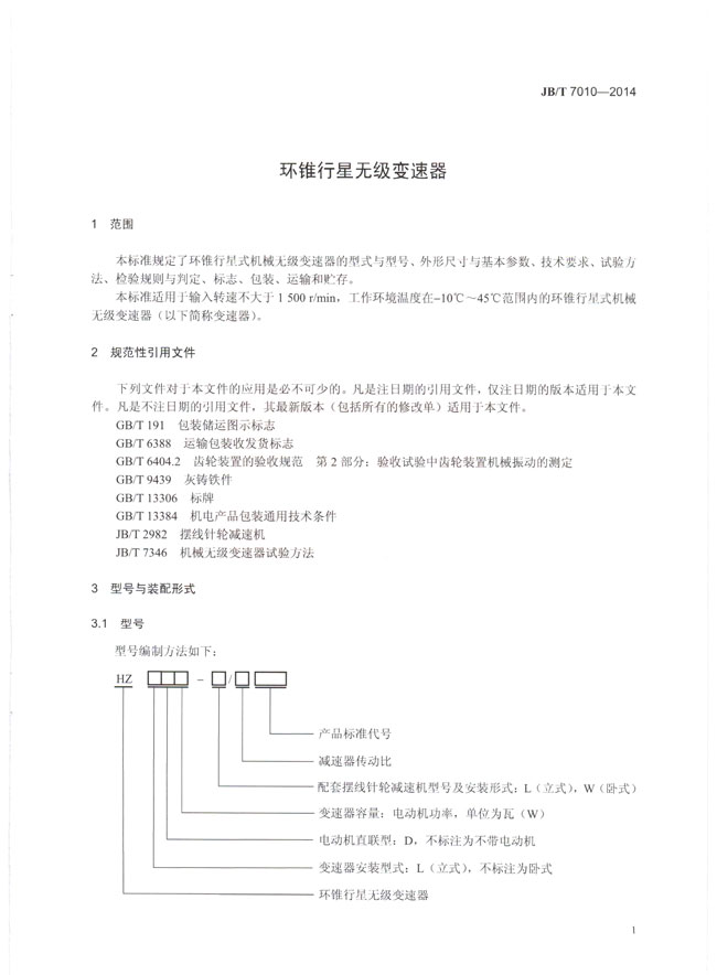 環(huán)錐行星無(wú)級(jí)變速器(JB/T7010-2014)