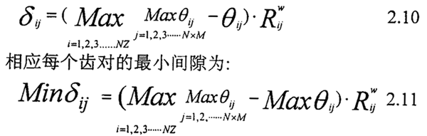 所對應(yīng)齒對上的點則為內(nèi)齒輪轉(zhuǎn)過θ后,NZ個齒中最先嚙合的齒對上的嚙合點,則在內(nèi)齒輪轉(zhuǎn)過θ時,對應(yīng)齒對圓周方向間隙為: