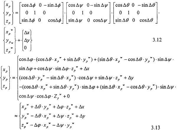 ,Δψ,Δθ為微小位移,則外齒輪任意一點PW(XPW,YPW,ZPW)在外齒輪相對內(nèi)齒輪發(fā)生位移后,在靜止坐標系內(nèi)的坐標為:PW(XP,YP,ZP)其值由式3.12~3.13定。