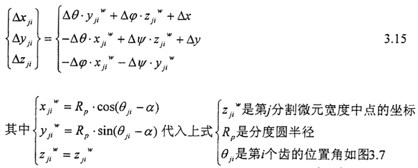 綜合上面引起分度圓方向的間隙的因素,可以得到第j分割微元第i個齒分度圓方向的平均間隙Cji0: