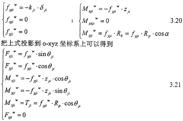 上式ΔCji--<0說明內(nèi)外齒發(fā)生相對位移后,齒面相對間隙為負,即內(nèi)外對應齒對在j微元第i齒對處相互接觸,δji可近似的看作內(nèi)外齒在j微元第i齒對處的相對變形。ΔCji-->0說明內(nèi)睜生相對位稱后,齒面相對間隙為正,內(nèi)外對應齒對在j,I處存在間隙,則可以認為內(nèi)外齒在ji處的相對變形δji=0。