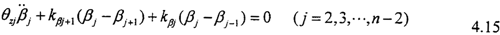 當(dāng)忽略軸承對(duì)轉(zhuǎn)子扭轉(zhuǎn)振動(dòng)的阻尼影響時(shí),則第j個(gè)質(zhì)點(diǎn)的扭矩自由振動(dòng)方程為:
