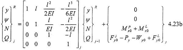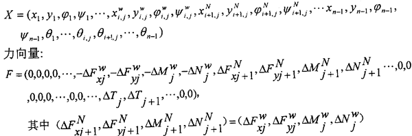 為總剛度陣,乃是因?yàn)槭剑?.20)還不是彎扭耦合振動(dòng)方程的最終形式。這是因?yàn)?):式(4.20)右端含有未知力ΔFxjk,ΔFyjk,ΔMjk,ΔNjk,ΔTj,(k=w,N),方程組中未知量個(gè)數(shù)多于方程個(gè)數(shù);2):ΔFxjk,ΔFyjk,ΔMjk,ΔNjk,ΔTj,(k=w,N)是本征的。必須解決上述這兩個(gè)問(wèn)題,才能得到彎扭耦合振動(dòng)方程。因而我們還需要尋求一種關(guān)系,通過(guò)這種關(guān)系,解決上述兩個(gè)問(wèn)題,使得各轉(zhuǎn)子的彎扭振動(dòng)及轉(zhuǎn)子間的彎扭振動(dòng)耦合起來(lái),并使彎扭耦合振動(dòng)的方程組有定解,即最終使(4.20)式化為如下標(biāo)準(zhǔn)形式