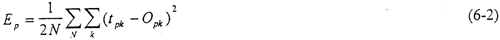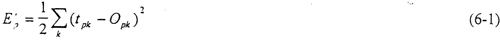 前饋網(wǎng)絡(luò)的訓(xùn)練學(xué)習(xí)是一種監(jiān)督學(xué)習(xí),而監(jiān)督學(xué)習(xí)的范例要求每一個(gè)輸入模式矢量與表示所期望的輸出模式矢量必須配對(duì)。一般說(shuō)來(lái),網(wǎng)絡(luò)輸出值{OPK}與期望的輸出值{tPK}是不相等的。對(duì)每一個(gè)輸入模式的模式樣本,其平方誤差