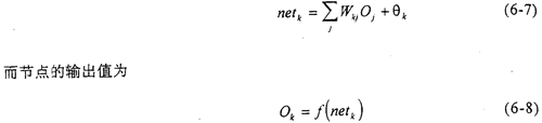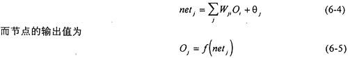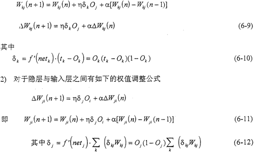對(duì)于圖6-1所示的網(wǎng)絡(luò),其訓(xùn)練學(xué)習(xí)的過(guò)程包括:1)網(wǎng)絡(luò)內(nèi)部的前向計(jì)算;2)誤差的反向傳播。其主要目的就是通過(guò)逐步調(diào)整網(wǎng)絡(luò)的內(nèi)部連接權(quán)值,使網(wǎng)絡(luò)的均方誤差達(dá)到我們的要求。網(wǎng)絡(luò)內(nèi)部的連接權(quán)值的調(diào)整,都是采用推廣的δ規(guī)則來(lái)完成的。