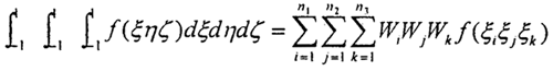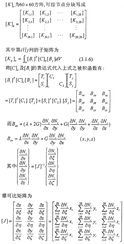 單元?jiǎng)偠汝囍衐V=∣J∣dξdηdζ,所以在局部坐標(biāo)系ξηζ內(nèi)積分式(3.1.6),可采用三維高斯求積公式: