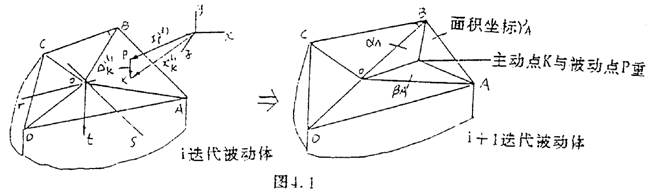 式中△up(i+1), △qk(i+1)表示第i+1迭代步P點及R點位移增量,由式(4.1.11)(4.1.12)得