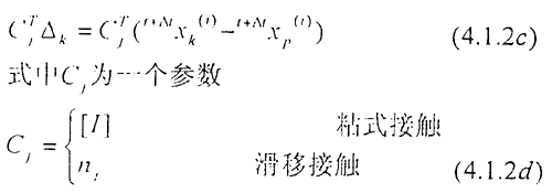 (1)粘式:兩物體接觸的點無相對運動,變形前后接觸點的局部坐標(biāo)值相同。