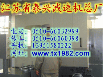 江蘇泰興減速機(jī)總廠業(yè)務(wù)部 在改革開放中崛起的江蘇省泰興減速機(jī)廠,現(xiàn)已成為中國(guó)減速機(jī)生產(chǎn)基地,中國(guó)機(jī)械工業(yè)500強(qiáng)重點(diǎn)企業(yè)。2004年公司完成含稅銷售收入6億元,創(chuàng)利稅1.5億元,交納泰興兩稅及基金規(guī)費(fèi)8500萬(wàn)元。公司