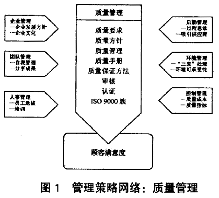 由圖1 可見(jiàn),策略網(wǎng)絡(luò)中的質(zhì)量管理,只有在其他各項(xiàng)管理策略的支持下,才能有效的發(fā)揮作用。