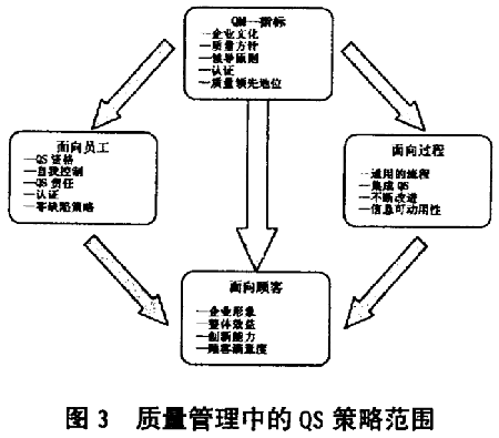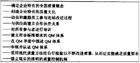按ISO9000 族標(biāo)準(zhǔn)建立的QM體系以及與此有關(guān)的QM 手冊(cè)和為獲得QM 體系認(rèn)證提供有效的QM 體系的證明,都相互影響和支持著QM 方法。這樣,策略上的指導(dǎo)目標(biāo)及成功實(shí)施,在于使質(zhì)量管理確實(shí)成為在市場(chǎng)競(jìng)爭(zhēng)中立于不敗之地的關(guān)鍵因素。